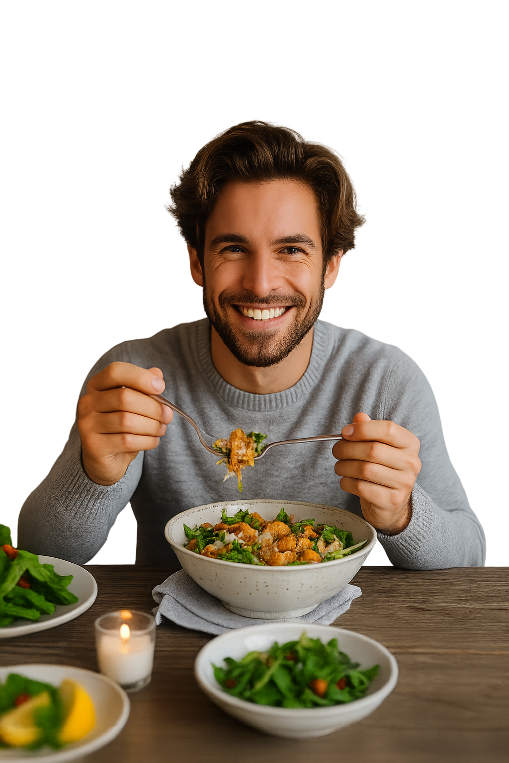 Simply sign up, fill out your profile, and start either uploading your meals (as a nurturer) or browsing menus (as an enjoyer).